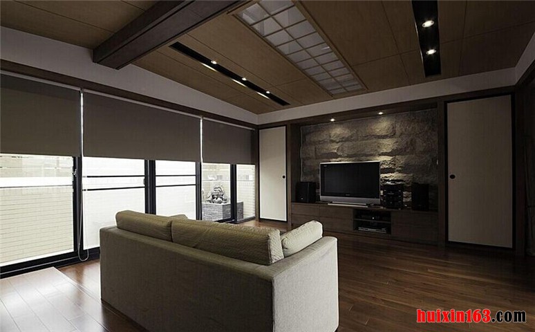 一般在日式风客厅的布置当中,采用的是平顶式的石膏板吊顶(个别的创意设计除外,比如实木吊顶),为了将空间演绎得更加的亮丽大方,干净整齐,在吊灯的设计上也各不相同,有的空间摒弃了繁琐笨重的的灯饰安装,在视觉效果上呈现出一种时尚利落的氛围,或者是安装一盏个性别致的吊灯以及射灯等等,其目的都是为了将空间打造得更加完美。