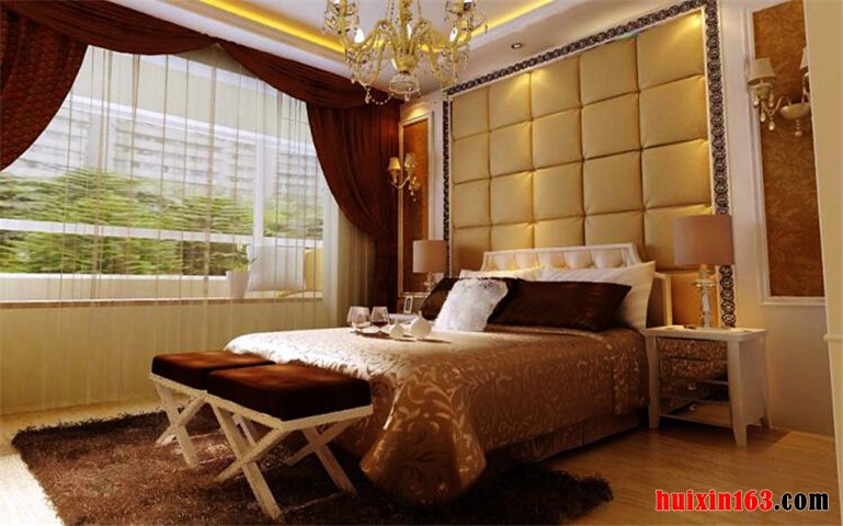 整体色彩构欢快流畅、均匀稳妥。以浓重的色线表达,详述欧式风格理念。意在体现欧式系列传统家装的厚重之感。欧式的床体造型和床品摆件,欧款的吊灯设计,欧式的线条勾勒,配合着欧式地砖拼花的衬托,将欧式风格卧室的设计案协调处理得优雅别致,温馨舒适。