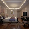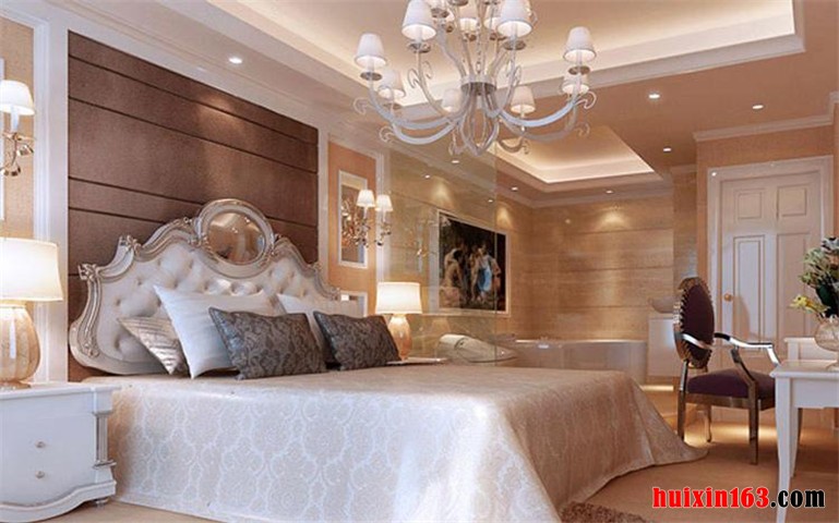 整体色彩构欢快流畅、均匀稳妥。以浓重的色线表达,详述欧式风格理念。意在体现欧式系列传统家装的厚重之感。欧式的床体造型和床品摆件,欧款的吊灯设计,欧式的线条勾勒,配合着欧式地砖拼花的衬托,将欧式风格卧室的设计案协调处理得优雅别致,温馨舒适。
