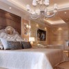 整体色彩构欢快流畅、均匀稳妥。以浓重的色线表达,详述欧式风格理念。意在体现欧式系列传统家装的厚重之感。欧式的床体造型和床品摆件,欧款的吊灯设计,欧式的线条勾勒,配合着欧式地砖拼花的衬托,将欧式风格卧室的设计案协调处理得优雅别致,温馨舒适。