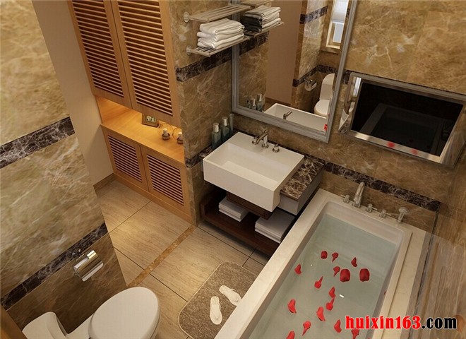 根据卫生间面积大小的不同,所装饰的效果也各不相同,对于空间面积比较大的居室来说,业主可以根据自己的喜好布置一些比较宽敞以及新颖的设计,将空间的美展现得淋漓尽致,而对于面积相对比较小得空间,要合理得利用空间面积,并且装饰易简不易繁,简洁的装饰能让空间显得更加宽敞。