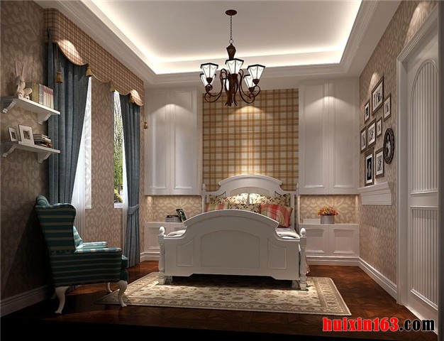 欧式大型布艺窗帘的设计,直接点明了欧式风格的设计主题,飘窗精致灵活,美观大方,既增加了自然光线的摄入,显得室内更加宽敞明亮,又增加了框形线条的勾勒作用,让整体和谐自然,协调统一。配合着附近顶棚的欧式造型大吊灯,一主一次,配合默契,相得益彰。