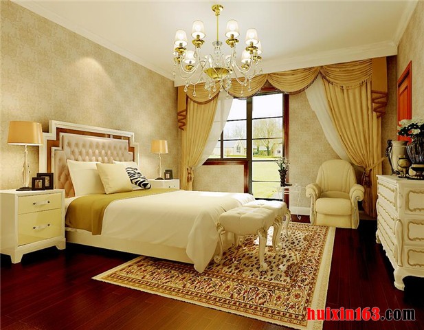 欧式大型布艺窗帘的设计,直接点明了欧式风格的设计主题,飘窗精致灵活,美观大方,既增加了自然光线的摄入,显得室内更加宽敞明亮,又增加了框形线条的勾勒作用,让整体和谐自然,协调统一。配合着附近顶棚的欧式造型大吊灯,一主一次,配合默契,相得益彰。