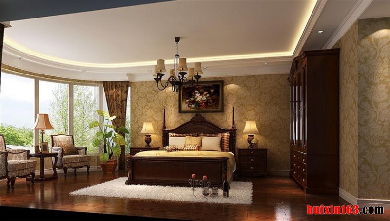 欧式大型布艺窗帘的设计,直接点明了欧式风格的设计主题,飘窗精致灵活,美观大方,既增加了自然光线的摄入,显得室内更加宽敞明亮,又增加了框形线条的勾勒作用,让整体和谐自然,协调统一。配合着附近顶棚的欧式造型大吊灯,一主一次,配合默契,相得益彰。