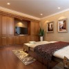 顶棚的处理简洁明快,线条勾勒自然灵活。设计以极富欧洲浪漫主义情怀的线调进行整体调控,欧式系列家具配饰来进行总体妆点,同时运用欧式元素符号来进行配合,使整体彰显和谐统一的气势。总体让卧室的功能性得以尽情体现,让舒适性和功能性的发挥更为完善,更为得体。