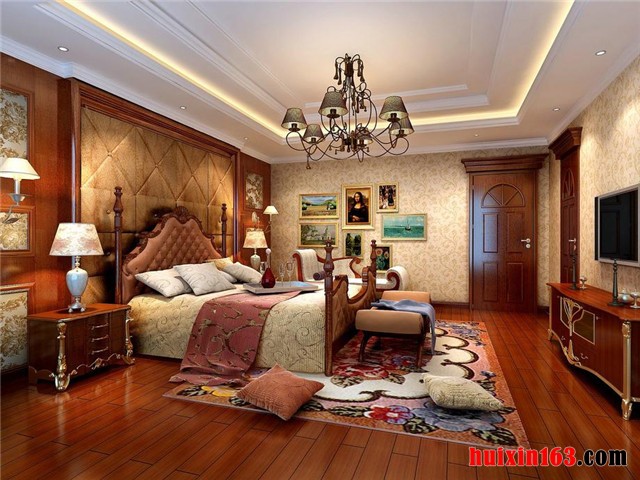 顶棚的处理简洁明快,线条勾勒自然灵活。设计以极富欧洲浪漫主义情怀的线调进行整体调控,欧式系列家具配饰来进行总体妆点,同时运用欧式元素符号来进行配合,使整体彰显和谐统一的气势。总体让卧室的功能性得以尽情体现,让舒适性和功能性的发挥更为完善,更为得体。