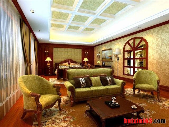 顶棚的处理简洁明快,线条勾勒自然灵活。设计以极富欧洲浪漫主义情怀的线调进行整体调控,欧式系列家具配饰来进行总体妆点,同时运用欧式元素符号来进行配合,使整体彰显和谐统一的气势。总体让卧室的功能性得以尽情体现,让舒适性和功能性的发挥更为完善,更为得体。