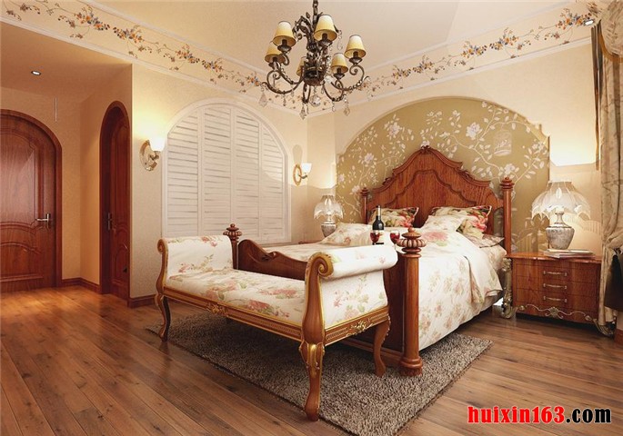 顶棚的处理简洁明快,线条勾勒自然灵活。设计以极富欧洲浪漫主义情怀的线调进行整体调控,欧式系列家具配饰来进行总体妆点,同时运用欧式元素符号来进行配合,使整体彰显和谐统一的气势。总体让卧室的功能性得以尽情体现,让舒适性和功能性的发挥更为完善,更为得体。