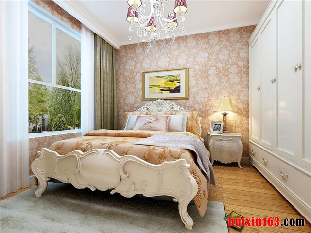 顶棚的处理简洁明快,线条勾勒自然灵活。设计以极富欧洲浪漫主义情怀的线调进行整体调控,欧式系列家具配饰来进行总体妆点,同时运用欧式元素符号来进行配合,使整体彰显和谐统一的气势。总体让卧室的功能性得以尽情体现,让舒适性和功能性的发挥更为完善,更为得体。