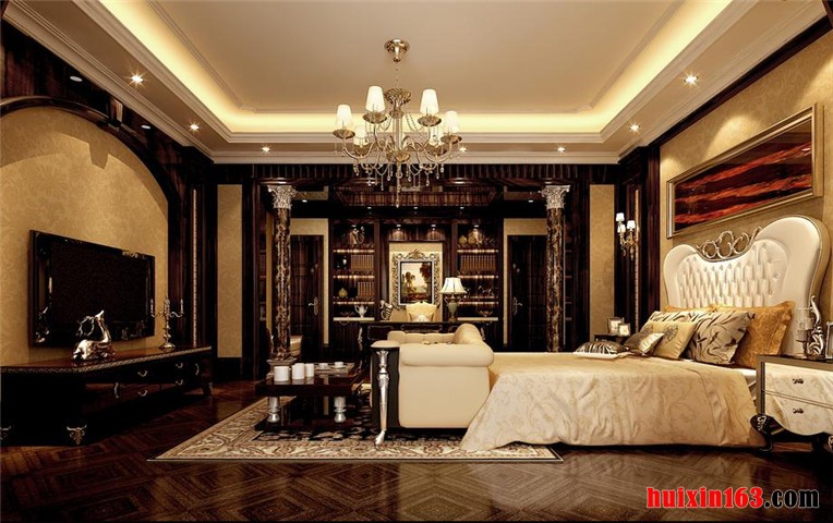 顶棚的处理简洁明快,线条勾勒自然灵活。设计以极富欧洲浪漫主义情怀的线调进行整体调控,欧式系列家具配饰来进行总体妆点,同时运用欧式元素符号来进行配合,使整体彰显和谐统一的气势。总体让卧室的功能性得以尽情体现,让舒适性和功能性的发挥更为完善,更为得体。