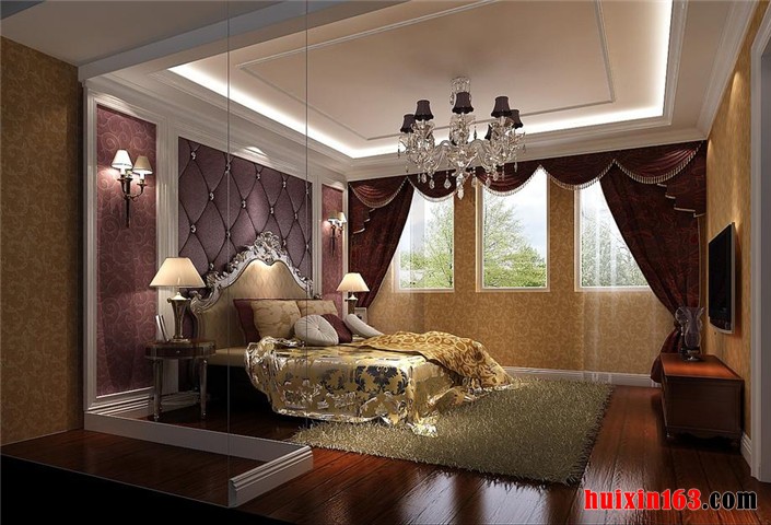 卧室的私密性当然是设计师应该考虑的一个环节,做为欧式风格的卧室设计理念,在注重私密性的同时,对于方便、简洁、和谐的处理原则也极为重视,从地面处理、墙面处理、顶棚处理三方面的色彩运用、线条勾勒来分析,总体彰显高雅舒适、浪漫温馨的欧式传统优雅格调气息。