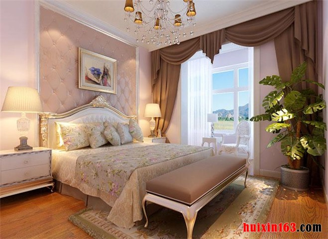 卧室的私密性当然是设计师应该考虑的一个环节,做为欧式风格的卧室设计理念,在注重私密性的同时,对于方便、简洁、和谐的处理原则也极为重视,从地面处理、墙面处理、顶棚处理三方面的色彩运用、线条勾勒来分析,总体彰显高雅舒适、浪漫温馨的欧式传统优雅格调气息。