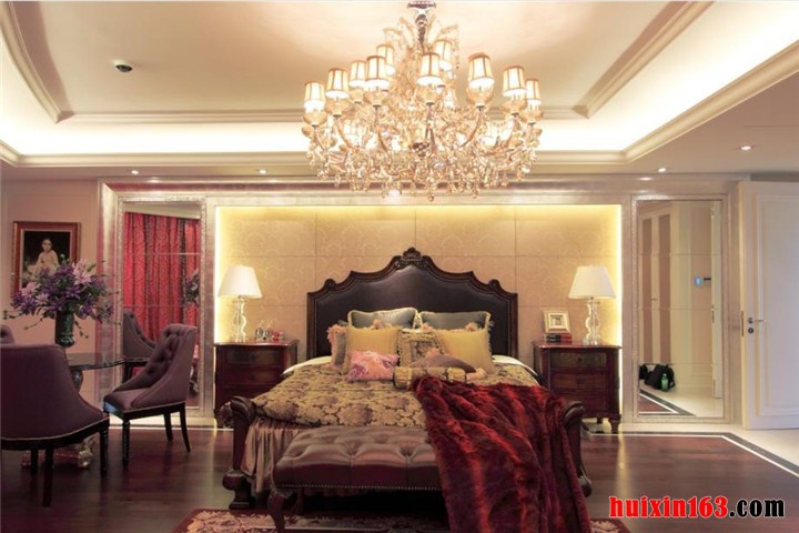 卧室的私密性当然是设计师应该考虑的一个环节,做为欧式风格的卧室设计理念,在注重私密性的同时,对于方便、简洁、和谐的处理原则也极为重视,从地面处理、墙面处理、顶棚处理三方面的色彩运用、线条勾勒来分析,总体彰显高雅舒适、浪漫温馨的欧式传统优雅格调气息。