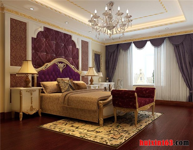 卧室的私密性当然是设计师应该考虑的一个环节,做为欧式风格的卧室设计理念,在注重私密性的同时,对于方便、简洁、和谐的处理原则也极为重视,从地面处理、墙面处理、顶棚处理三方面的色彩运用、线条勾勒来分析,总体彰显高雅舒适、浪漫温馨的欧式传统优雅格调气息。