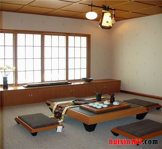 日式家装的淡雅、简洁之风的理念是大家所公认的。经常采用较为清晰的线条以含蓄自然的姿态进行细致勾勒。使整体的布置显得更加优雅、清洁,有较强的几何立体感。同时,做为餐厅的特殊职能空间,功能性必须得以体现的同时,还要讲究和日式风格相搭配的实用性考虑。