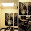 日式家装的淡雅、简洁之风的理念是大家所公认的。经常采用较为清晰的线条以含蓄自然的姿态进行细致勾勒。使整体的布置显得更加优雅、清洁,有较强的几何立体感。同时,做为餐厅的特殊职能空间,功能性必须得以体现的同时,还要讲究和日式风格相搭配的实用性考虑。