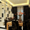 从直观效果一眼就可以断定,这是典型的日式风格的餐厅设计,色系搭配,色调运用,色彩协调,都讲究日系通常使用的风格,家具配饰的造型款式,细腻的线条在空间内的尽情勾勒,都以日式较为明显的理念进行操作。对于背景墙的整体处理,墙纸的择,交叉使用漆面涂刷的形式,大量木质建材的使用,都符合日式风格系列家装的一惯作法。