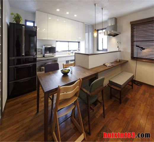 从直观效果一眼就可以断定,这是典型的日式风格的餐厅设计,色系搭配,色调运用,色彩协调,都讲究日系通常使用的风格,家具配饰的造型款式,细腻的线条在空间内的尽情勾勒,都以日式较为明显的理念进行操作。对于背景墙的整体处理,墙纸的择,交叉使用漆面涂刷的形式,大量木质建材的使用,都符合日式风格系列家装的一惯作法。