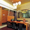 从直观效果一眼就可以断定,这是典型的日式风格的餐厅设计,色系搭配,色调运用,色彩协调,都讲究日系通常使用的风格,家具配饰的造型款式,细腻的线条在空间内的尽情勾勒,都以日式较为明显的理念进行操作。对于背景墙的整体处理,墙纸的择,交叉使用漆面涂刷的形式,大量木质建材的使用,都符合日式风格系列家装的一惯作法。 更多»推荐家装效果图