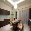 从直观效果一眼就可以断定,这是典型的日式风格的餐厅设计,色系搭配,色调运用,色彩协调,都讲究日系通常使用的风格,家具配饰的造型款式,细腻的线条在空间内的尽情勾勒,都以日式较为明显的理念进行操作。对于背景墙的整体处理,墙纸的择,交叉使用漆面涂刷的形式,大量木质建材的使用,都符合日式风格系列家装的一惯作法。