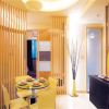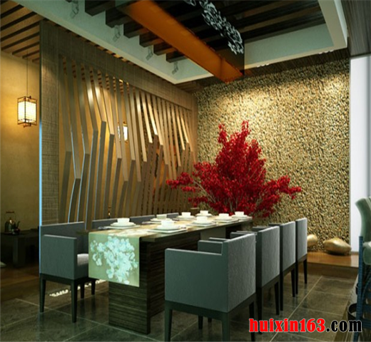 墙面处理简洁明快,流畅自然。分别和地面和顶棚的色调相互配合,同时,部分餐厅用具的点缀色彩也体现了和墙面色彩的协调统一之势。三者的平衡状态,均衡程度,都把握的恰到好处。通体焕发出大自然气息的同时,更兼具艺术性和观赏性的存在。