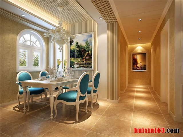 无论是在空间划分和整体布局方面,还是色彩搭配运用以及线条勾勒处理方面,都以极具美式风格的笔调进行刻画。使餐厅的功能性得以充分体现的同时,对职能空间的舒适性也进一步进行烘托,同时,艺术性和观赏性的考虑也遵循了一定的美式系列家装的规律来进行,完全做到协调一致。