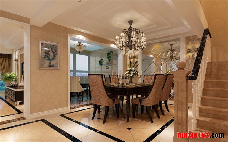 无论是在空间划分和整体布局方面,还是色彩搭配运用以及线条勾勒处理方面,都以极具美式风格的笔调进行刻画。使餐厅的功能性得以充分体现的同时,对职能空间的舒适性也进一步进行烘托,同时,艺术性和观赏性的考虑也遵循了一定的美式系列家装的规律来进行,完全做到协调一致。