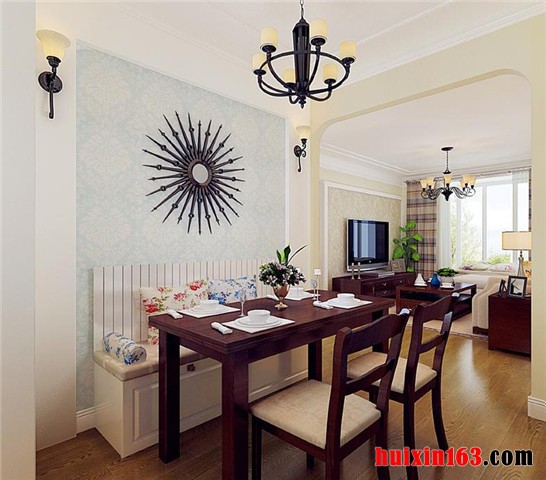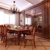 无论是在空间划分和整体布局方面,还是色彩搭配运用以及线条勾勒处理方面,都以极具美式风格的笔调进行刻画。使餐厅的功能性得以充分体现的同时,对职能空间的舒适性也进一步进行烘托,同时,艺术性和观赏性的考虑也遵循了一定的美式系列家装的规律来进行,完全做到协调一致。