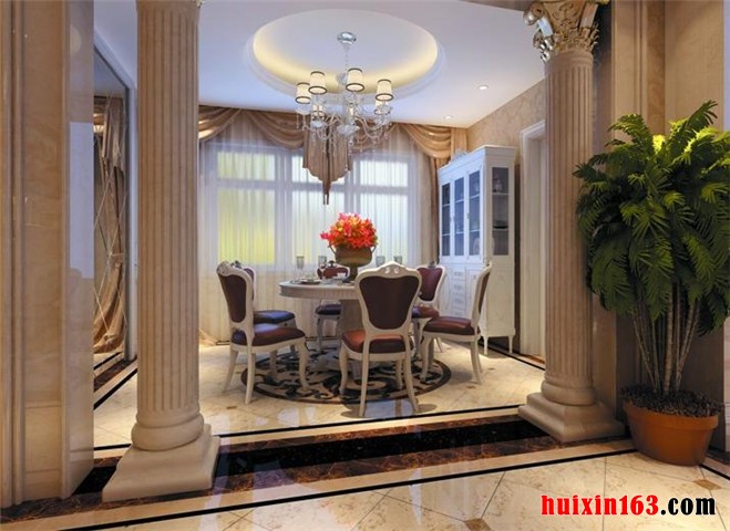 无论是在空间划分和整体布局方面,还是色彩搭配运用以及线条勾勒处理方面,都以极具美式风格的笔调进行刻画。使餐厅的功能性得以充分体现的同时,对职能空间的舒适性也进一步进行烘托,同时,艺术性和观赏性的考虑也遵循了一定的美式系列家装的规律来进行,完全做到协调一致。