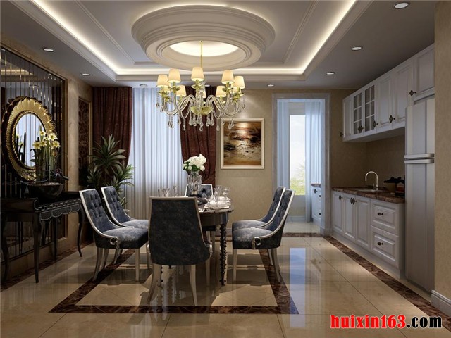 无论是在空间划分和整体布局方面,还是色彩搭配运用以及线条勾勒处理方面,都以极具美式风格的笔调进行刻画。使餐厅的功能性得以充分体现的同时,对职能空间的舒适性也进一步进行烘托,同时,艺术性和观赏性的考虑也遵循了一定的美式系列家装的规律来进行,完全做到协调一致。