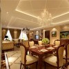 无论是在空间划分和整体布局方面,还是色彩搭配运用以及线条勾勒处理方面,都以极具美式风格的笔调进行刻画。使餐厅的功能性得以充分体现的同时,对职能空间的舒适性也进一步进行烘托,同时,艺术性和观赏性的考虑也遵循了一定的美式系列家装的规律来进行,完全做到协调一致。
