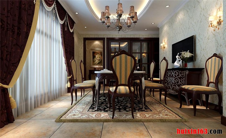 餐厅做为用餐的一个区域空间,讲究实用性和舒适性的同时,整体以科学严谨的美式设计理念为依托,总体布局,局部烘托,以美式自由舒适的风格特征为基调,让色彩的协调平衡达到极致,意在彰显温馨舒适|其乐融融的就餐环境,餐厅家具配饰的点缀作用,更是将职能空间的风格特点衬托到了顶点。