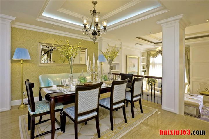 餐厅做为用餐的一个区域空间,讲究实用性和舒适性的同时,整体以科学严谨的美式设计理念为依托,总体布局,局部烘托,以美式自由舒适的风格特征为基调,让色彩的协调平衡达到极致,意在彰显温馨舒适|其乐融融的就餐环境,餐厅家具配饰的点缀作用,更是将职能空间的风格特点衬托到了顶点。