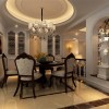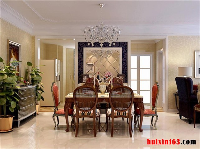 设计师在整套房屋的的装修设计方面,严格遵循美式风格的特点元素,根据户型和空间的优势,利用色彩的渲染和线条的勾勒,进行合理的空间布局,发挥餐厅家具配饰的妆点作用,以和谐舒适、恬静优雅的职能空间环境烘托为突破口,协调建材质地的情绪表达,体现餐厅的功用效果。