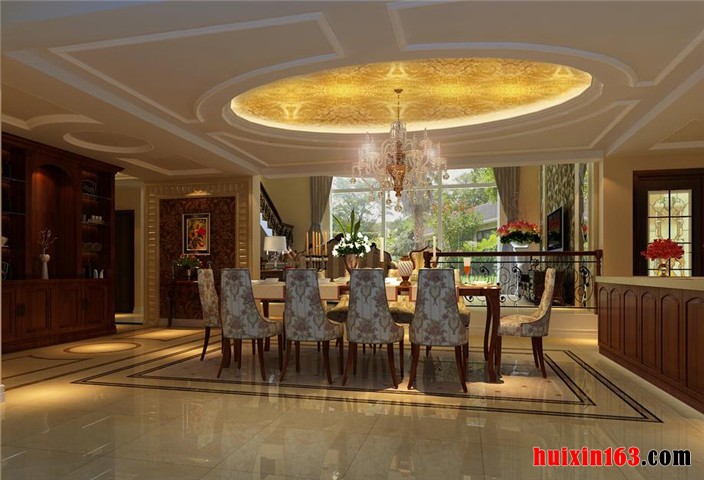 设计师在整套房屋的的装修设计方面,严格遵循美式风格的特点元素,根据户型和空间的优势,利用色彩的渲染和线条的勾勒,进行合理的空间布局,发挥餐厅家具配饰的妆点作用,以和谐舒适、恬静优雅的职能空间环境烘托为突破口,协调建材质地的情绪表达,体现餐厅的功用效果。
