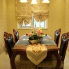 设计师在整套房屋的的装修设计方面,严格遵循美式风格的特点元素,根据户型和空间的优势,利用色彩的渲染和线条的勾勒,进行合理的空间布局,发挥餐厅家具配饰的妆点作用,以和谐舒适、恬静优雅的职能空间环境烘托为突破口,协调建材质地的情绪表达,体现餐厅的功用效果。