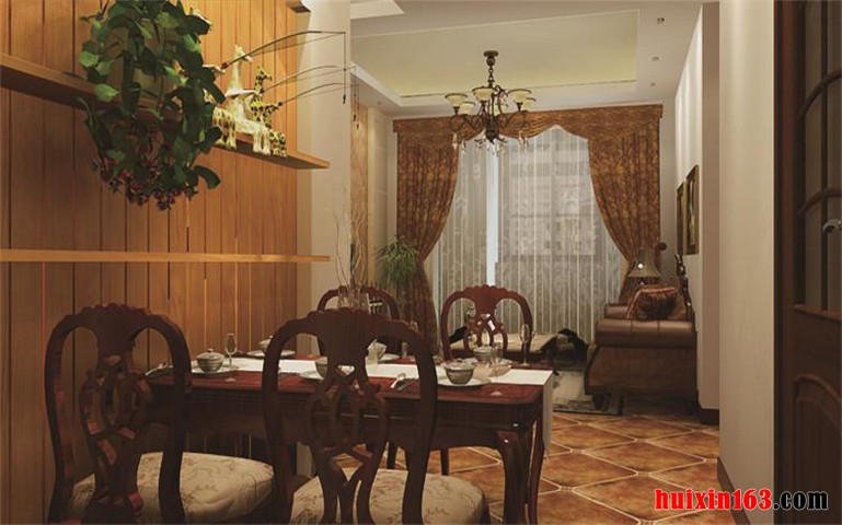 设计师在整套房屋的的装修设计方面,严格遵循美式风格的特点元素,根据户型和空间的优势,利用色彩的渲染和线条的勾勒,进行合理的空间布局,发挥餐厅家具配饰的妆点作用,以和谐舒适、恬静优雅的职能空间环境烘托为突破口,协调建材质地的情绪表达,体现餐厅的功用效果。