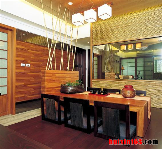 日式风格系列家装,往往使用大量木质建材,也包括一些家具配饰的使用,其实有相当部分大自然的气息存在,表现出要自然和谐、与大自然融为一体的设计理念。善于借助自然的外在景色,以此妆点室内的环境,并且做到协调一致,和谐统一。自然质感较强的建材和配饰当然是设计师的不二选择。