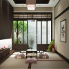 日式风格系列家装,往往使用大量木质建材,也包括一些家具配饰的使用,其实有相当部分大自然的气息存在,表现出要自然和谐、与大自然融为一体的设计理念。善于借助自然的外在景色,以此妆点室内的环境,并且做到协调一致,和谐统一。自然质感较强的建材和配饰当然是设计师的不二选择。
