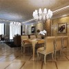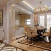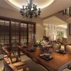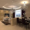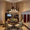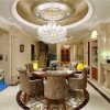 地面的处理简洁明快、流畅自然。地板材质的选择体现了和整体色调相互配合的特点。典雅厚重、稳键深沉都在地面的处理当中得以体现。如此格调的地面处理,和墙面墙纸的选择,以及顶棚一泻如注的纯洁色调相辅相承,相互配合,相得益彰。