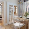 墙面处理纯洁自然、清新亮丽。墙纸的选择很好的体现了对于温馨舒适的用餐环境的特殊需求。局部区域以漆面涂刷的形式进行与墙纸的有效衔接。起到了良好的作用。墙面色彩与地板的颜色加上顶棚的色调,三者相互对比,相互协调,相互映衬。做到了有效的配合。