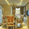 墙面处理纯洁自然、清新亮丽。墙纸的选择很好的体现了对于温馨舒适的用餐环境的特殊需求。局部区域以漆面涂刷的形式进行与墙纸的有效衔接。起到了良好的作用。墙面色彩与地板的颜色加上顶棚的色调,三者相互对比,相互协调,相互映衬。做到了有效的配合。