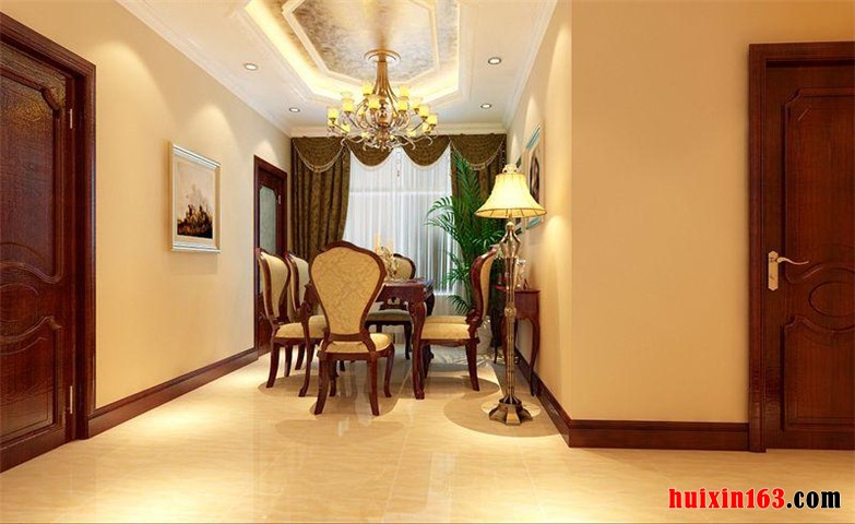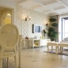 墙面处理纯洁自然、清新亮丽。墙纸的选择很好的体现了对于温馨舒适的用餐环境的特殊需求。局部区域以漆面涂刷的形式进行与墙纸的有效衔接。起到了良好的作用。墙面色彩与地板的颜色加上顶棚的色调,三者相互对比,相互协调,相互映衬。做到了有效的配合。