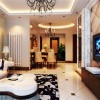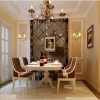 墙面处理纯洁自然、清新亮丽。墙纸的选择很好的体现了对于温馨舒适的用餐环境的特殊需求。局部区域以漆面涂刷的形式进行与墙纸的有效衔接。起到了良好的作用。墙面色彩与地板的颜色加上顶棚的色调,三者相互对比,相互协调,相互映衬。做到了有效的配合。