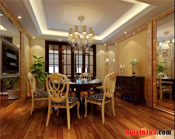 墙面处理纯洁自然、清新亮丽。墙纸的选择很好的体现了对于温馨舒适的用餐环境的特殊需求。局部区域以漆面涂刷的形式进行与墙纸的有效衔接。起到了良好的作用。墙面色彩与地板的颜色加上顶棚的色调,三者相互对比,相互协调,相互映衬。做到了有效的配合。