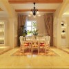 墙面处理纯洁自然、清新亮丽。墙纸的选择很好的体现了对于温馨舒适的用餐环境的特殊需求。局部区域以漆面涂刷的形式进行与墙纸的有效衔接。起到了良好的作用。墙面色彩与地板的颜色加上顶棚的色调,三者相互对比,相互协调,相互映衬。做到了有效的配合。