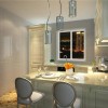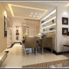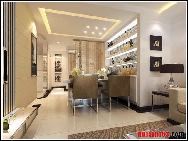 顶棚处理优雅别致,趣味盎然。造型或稳键,或有变,或流畅,或蜿蜒,都以美式的风格理念为依托,趋步向前,如苍穹般的存在,给整个职能空间的观赏和艺术性增添了必要的依据。石膏线勾勒石膏板的处理,配合着区域空间其它或大或小,造型迥异的色块拼接,美观大方。