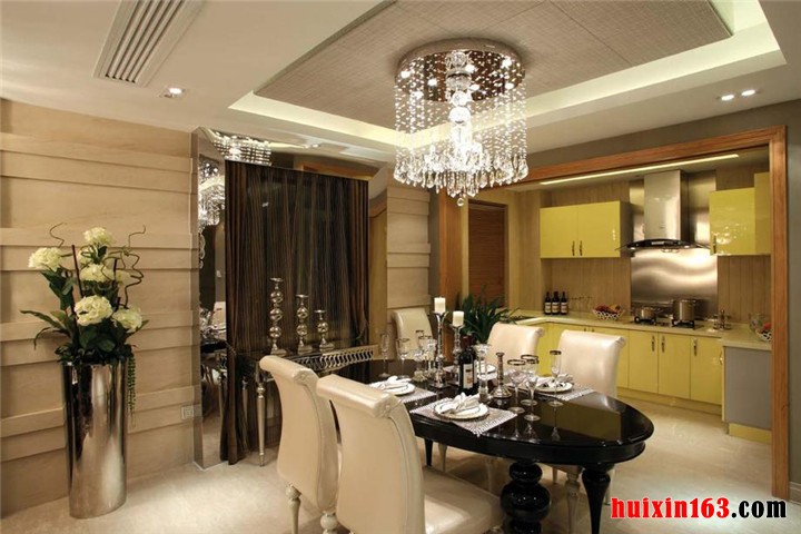 顶棚处理优雅别致,趣味盎然。造型或稳键,或有变,或流畅,或蜿蜒,都以美式的风格理念为依托,趋步向前,如苍穹般的存在,给整个职能空间的观赏和艺术性增添了必要的依据。石膏线勾勒石膏板的处理,配合着区域空间其它或大或小,造型迥异的色块拼接,美观大方。
