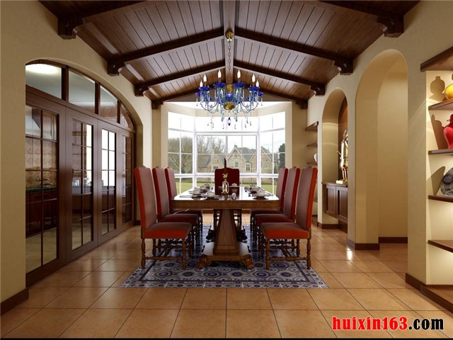 顶棚处理优雅别致,趣味盎然。造型或稳键,或有变,或流畅,或蜿蜒,都以美式的风格理念为依托,趋步向前,如苍穹般的存在,给整个职能空间的观赏和艺术性增添了必要的依据。石膏线勾勒石膏板的处理,配合着区域空间其它或大或小,造型迥异的色块拼接,美观大方。