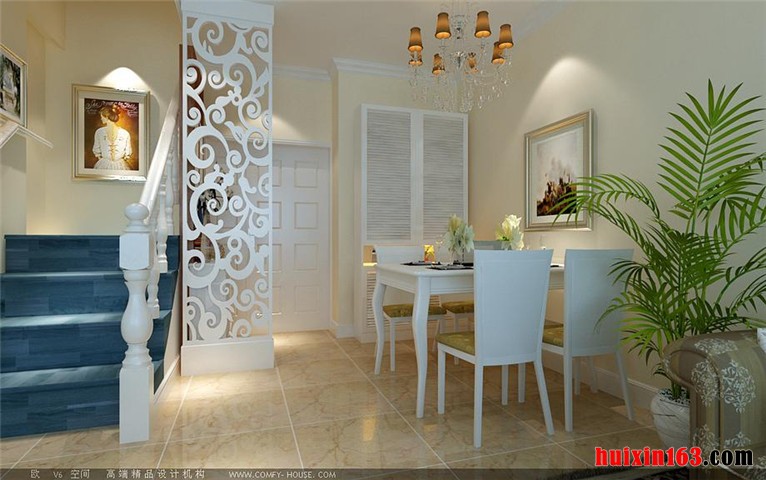 顶棚处理优雅别致,趣味盎然。造型或稳键,或有变,或流畅,或蜿蜒,都以美式的风格理念为依托,趋步向前,如苍穹般的存在,给整个职能空间的观赏和艺术性增添了必要的依据。石膏线勾勒石膏板的处理,配合着区域空间其它或大或小,造型迥异的色块拼接,美观大方。